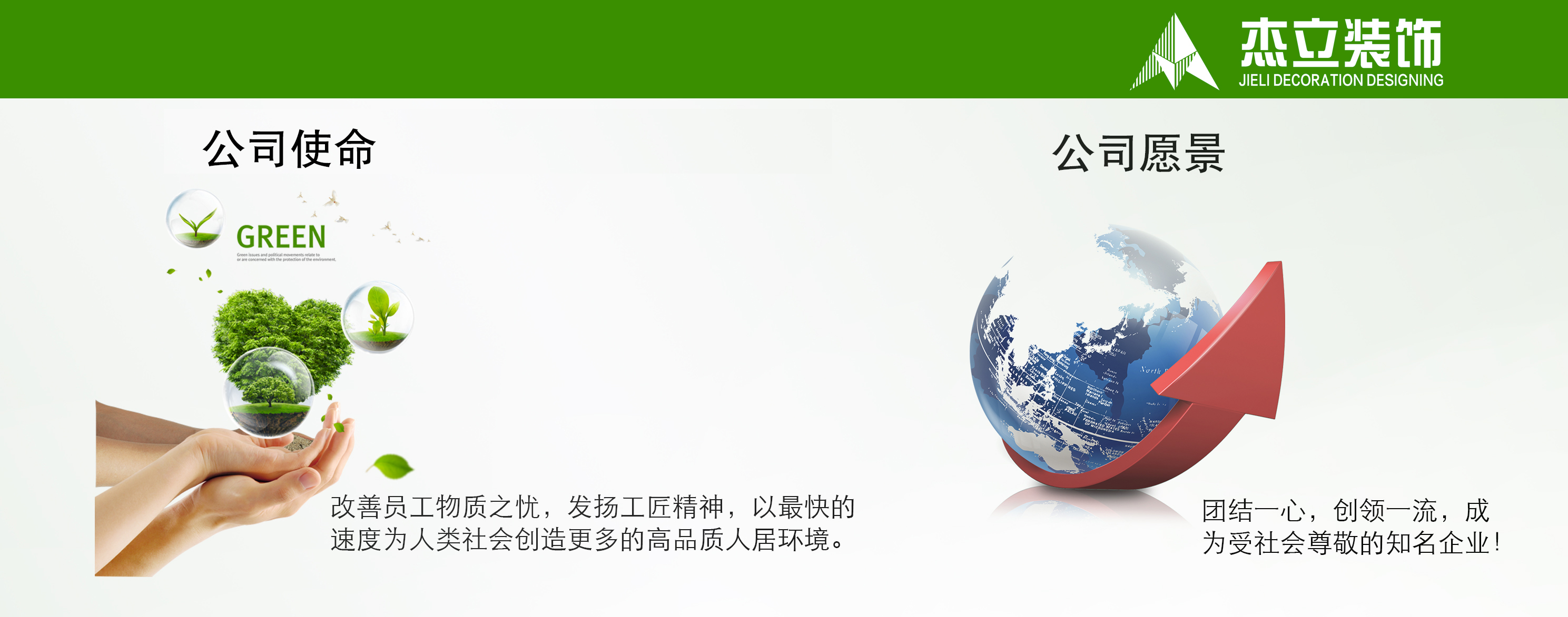 【导语】杰立装饰成立多年,推动我们前进的不竭动力,不仅仅是成就事业、实现人生价值的初心和梦想,更有一种超越物质层面的精神力量和价值观,那就是以“团结一心,创领一流,成为受社会尊敬的知名企业”的企业愿景,和为人类社会创造更多的高品质人居环境的企业使命。