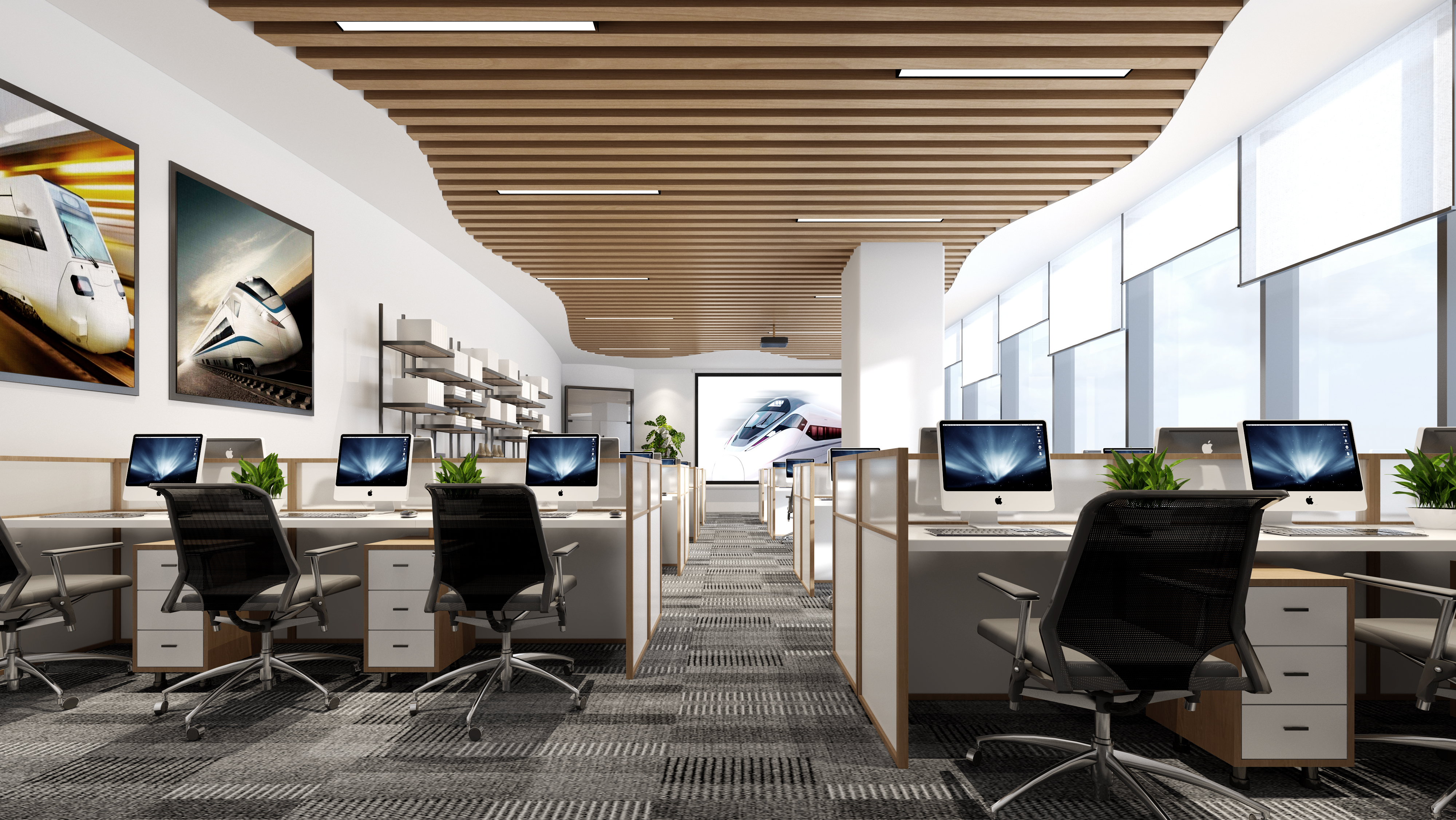 此办公空间的设计理念是打造一个简洁、时尚、温馨又舒适的现代企业办公空间,既结合办公需求和工作流程,科学合理的划分职能区域,又考虑员工与领导之间、职能区域之间的相互交流。