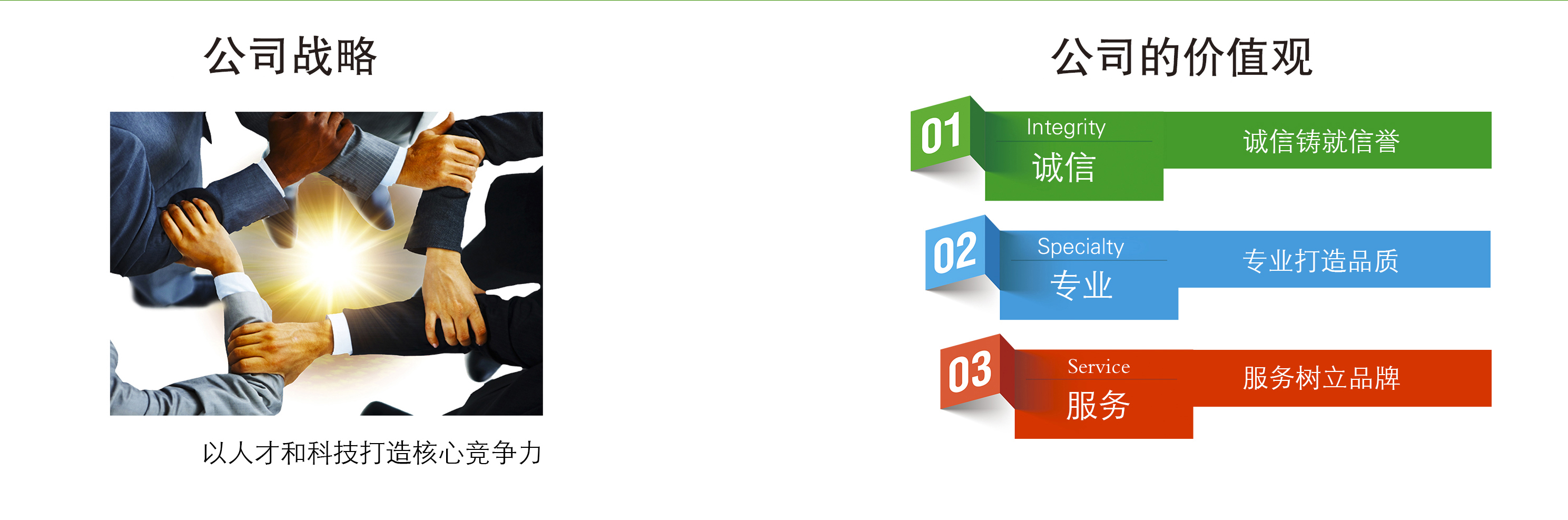 我们的价值观以诚信铸就信誉,专业打造品质,服务树立品牌。