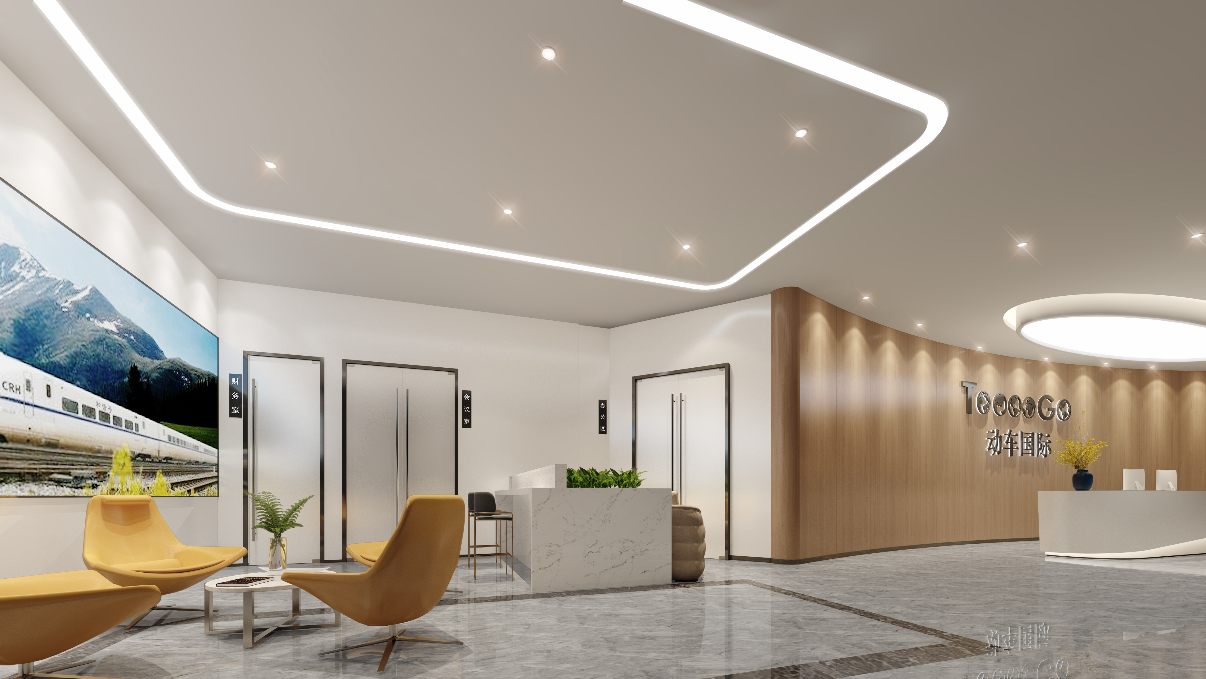 此办公空间的设计理念是打造一个简洁、时尚、温馨又舒适的现代企业办公空间,既结合办公需求和工作流程,科学合理的划分职能区域,又考虑员工与领导之间、职能区域之间的相互交流。